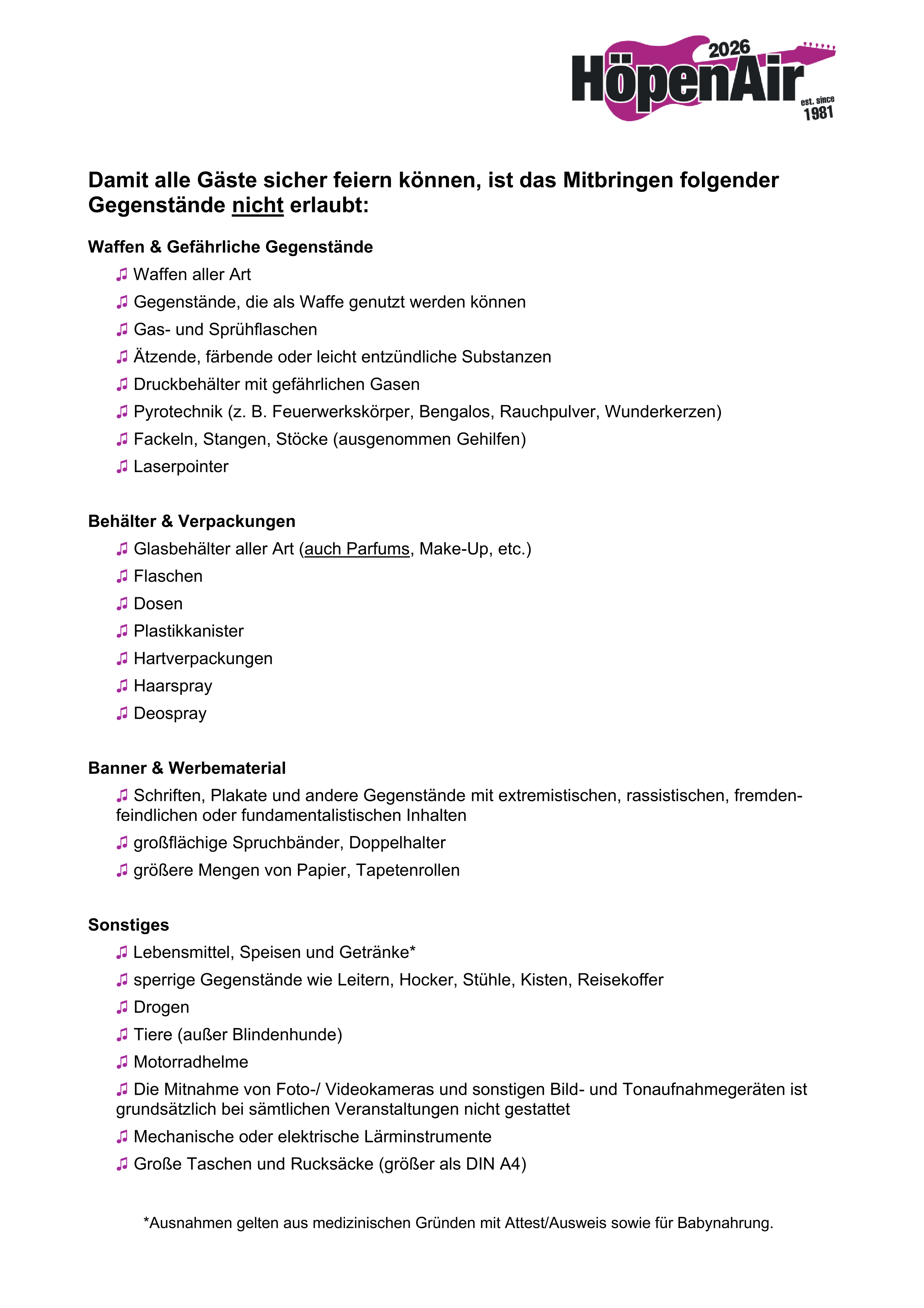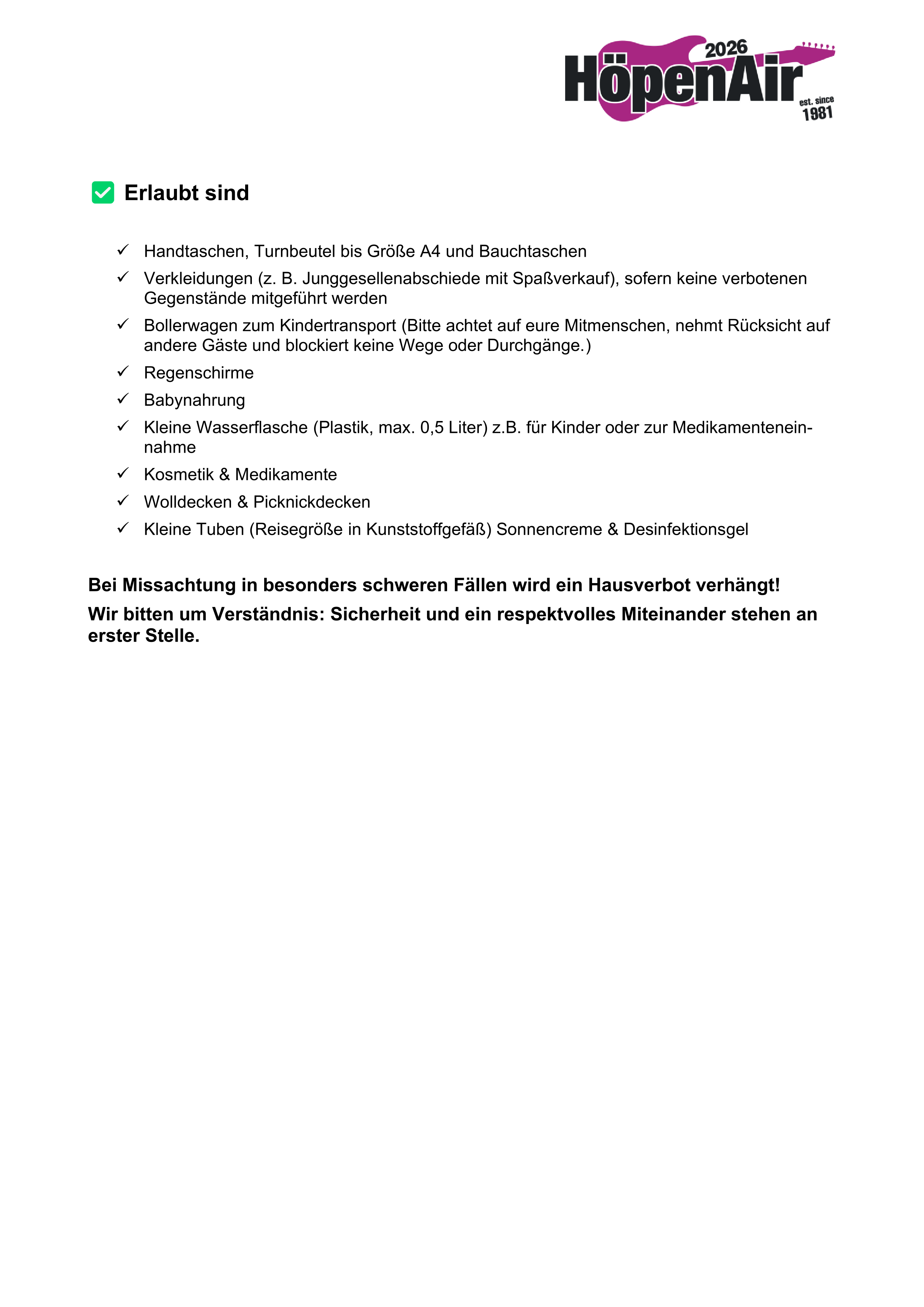 Die komplette Übersicht der Einlassregularien findet ihr hier: Einlassregularien HöpenAir 2026