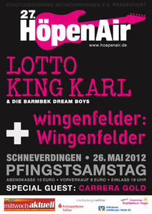 | 26.05.2012 | Lotto King Karl & DBDB, wingenfelder:Wingenfelder, Carrera Gold, Zeitpuls | |