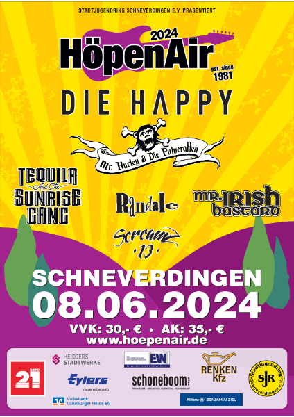 | 08.06.2024 | Scream 13, Randale, Mr. Hurley & Die Pulveraffen, Die Happy, Tequila and the Sunrise Gang, Mr. Irish Bastard |